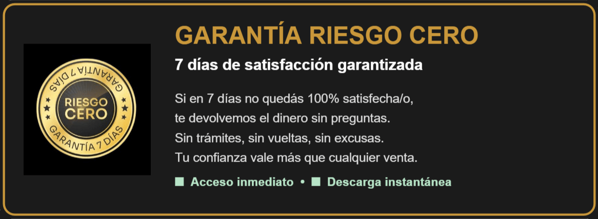Podés seguir buscando información suelta, probando dietas que no duran y posponiendo el cambio. O podés tener las 30 recetas ordenadas, listas y en tu celular en los próximos 2 minutos. La diferencia entre querer cambiar y empezar a cambiar es una sola decisión.